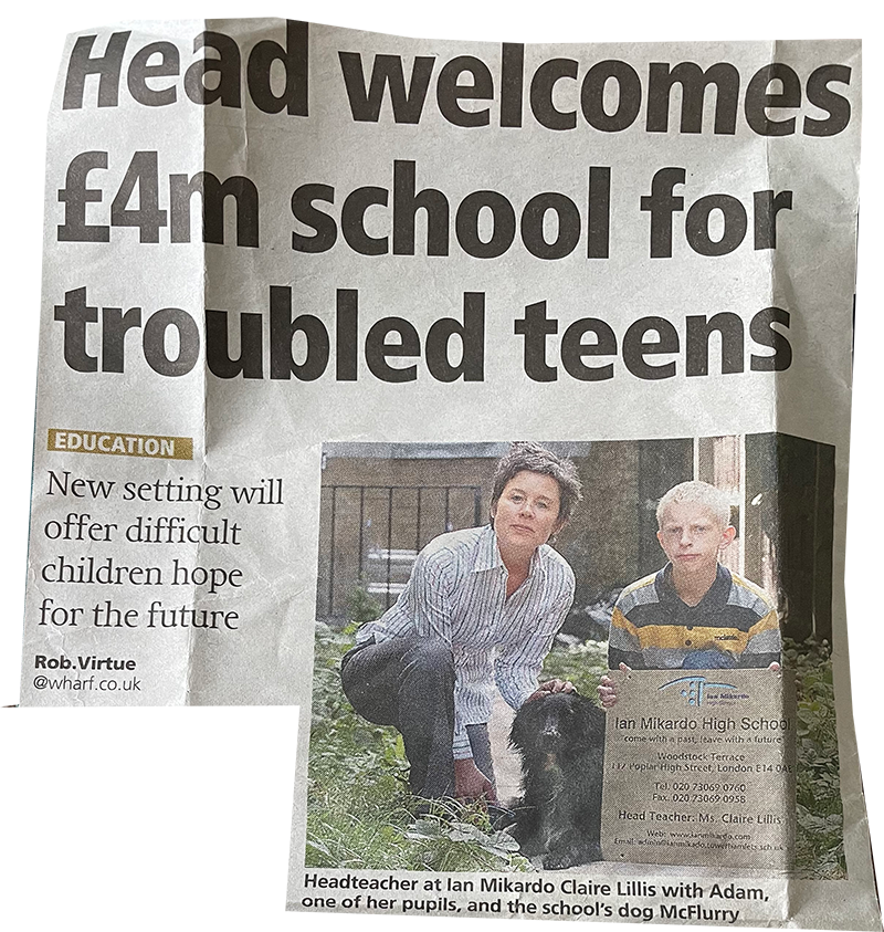 Claire joined Ian Mikardo High School (IMHS) in Tower Hamlets in 2002, as the 4th headteacher in 9 months. Her radical and creative methods took the school from âSpecial Measuresâ to âOutstandingâ in just 2 years. Under her guidance, the school has held the award of âOutstandingâ ever since.
